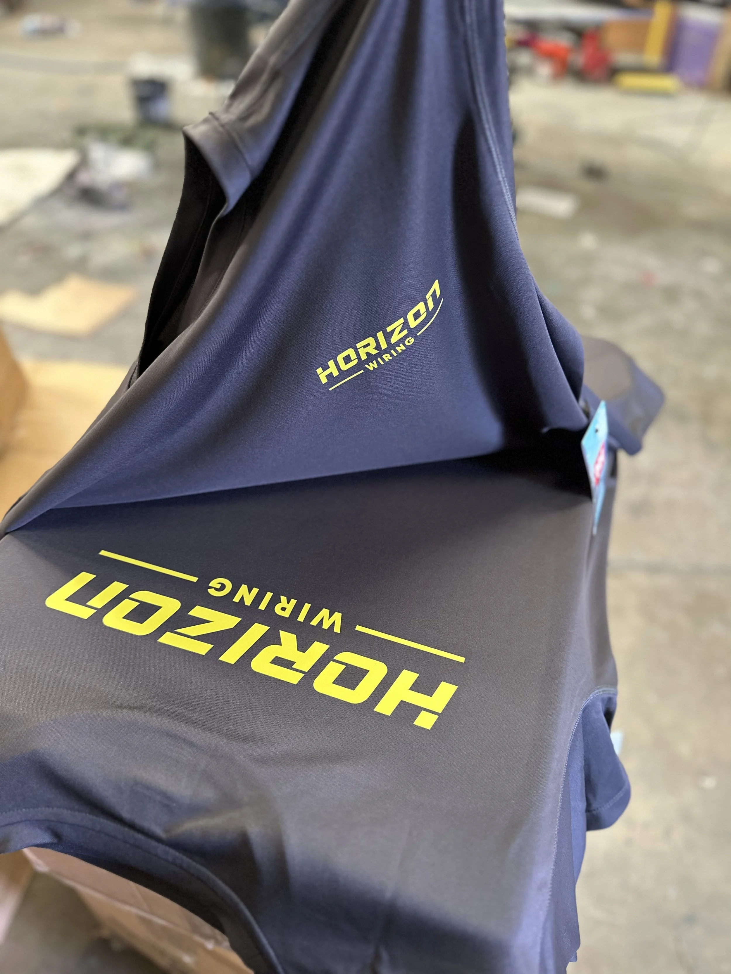 Direct to Film printing -or DTF, as it’s widely known - is a cutting-edge technique revolutionising custom apparel. DTF allows vibrant, full-color designs to be printed onto virtually any fabric and is ideal for short runs or for any job that require multiple colours or fades. With this digital method, the design is printed onto a special film, which is then powder coated with a fine, dry bonding adhesive. The print is then trasnferred onto a garment using a specialist heat press, which presses both heat and immense weight onto the garment, forming bonding between print and garment. This technique offers vibrant, detailed prints on various fabrics, including dark colors, and is known for its durability and versatility. DTF is a popular alternative to traditional screen printing, especially for smaller production runs, and doesn't require screens or chemicals.