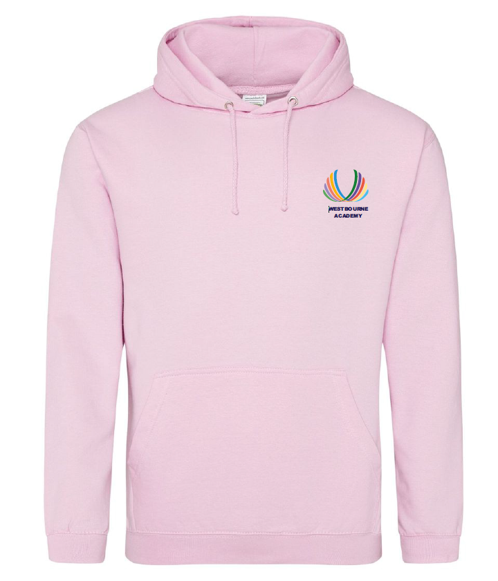 Hoodies will be embroidered on the front left breast with the Westbourne Academy logo and Screen Printed on the back with student names listed in columns (Class of 2026)